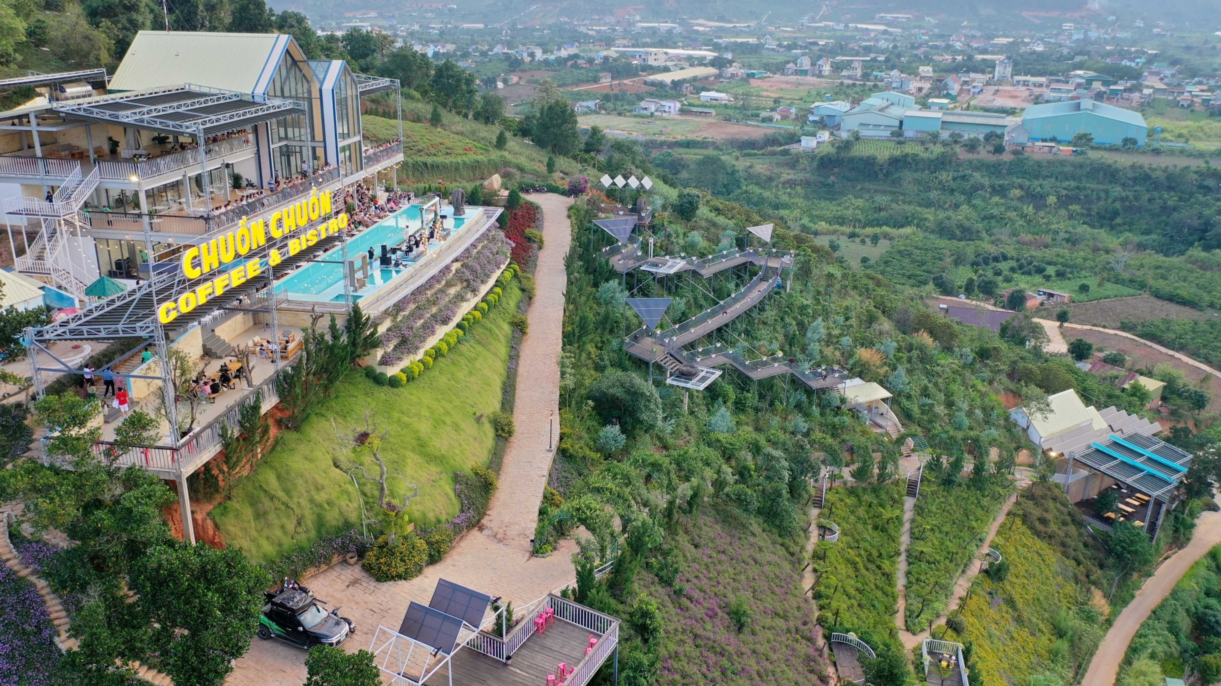 - Khu du lịch Chuồn Chuồn là một khu phức hợp rộng lớn nằm giữa thiên nhiên, bao gồm không gian cà phê cực chill và vô vàn điểm check-in "sống ảo" đẹp mãn nhãn cho phép bạn vui chơi 2 trong 1. Đặc biệt nổi bật đó là trò chơi xe trượt trên cao mang lại cảm giác mạnh cho những ai đam mê tốc độ.
