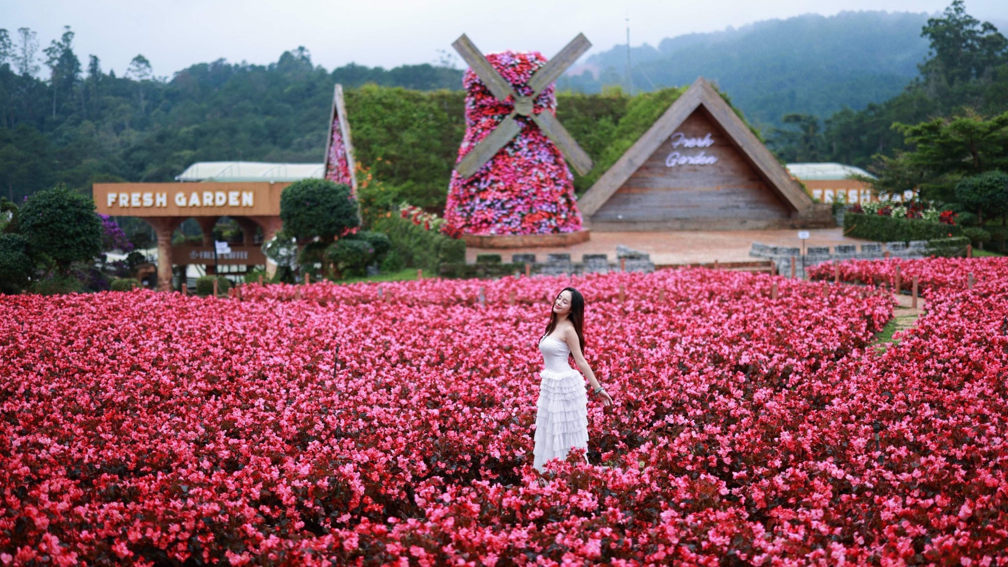- Khu du lịch Fresh Garden là một điểm tham quan nổi tiếng với những khu vườn hoa rực rỡ sắc màu và nhiều tiểu cảnh độc đáo như đôi cánh thiên thần, đảo chim đại bàng, cổng trời châu Âu, hồ vô cực, động băng Thiên thần hay đường hầm 12 con giáp. Đặt chân đến đây, bạn sẽ như lạc vào một thảo nguyên đầy sắc hoa, mỗi góc nhỏ đều mang đến cảm giác thư thái và tràn đầy sức sống.